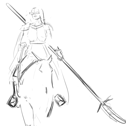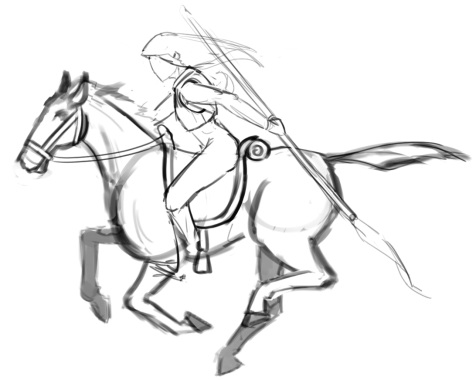 This week was just a bunch of animation roughs, most of them I ended up having to redesign, which is expected, but I managed to end up learning the basic idea behind horse-riding frames, although what is shown below isn’t representative of what will turn into a finished animation, (no character and the horse itself isn’t dressed) the motion and proportions I’m looking for is there, which makes pipelining all the horseback animations pretty straight forward. The characters are pretty easy because the motion doesn’t create complicated movements for any hanging pieces off the character, just the hair/cloth bob up and down. Also did some post-line work for some animations such as the lance attack below. I always learn a new time-saving trick whenever I do the line work which is always nice. Thanks for reading.
